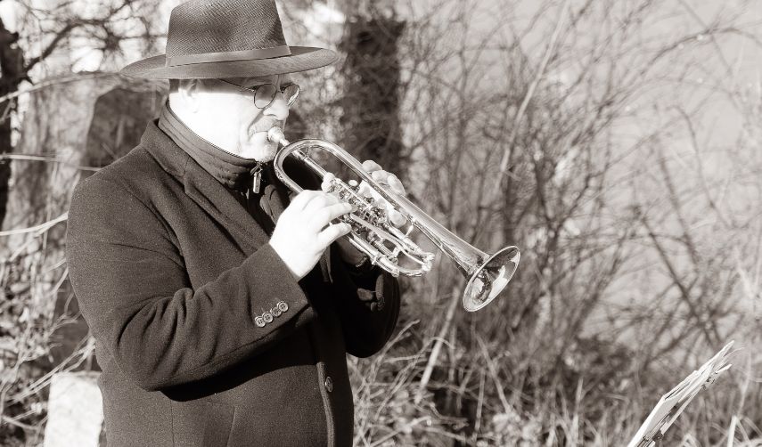 Musik ist immer ein schöner Begleiter, so auch bei einer Trauerfeier. Dabei muss Trauermusik nicht traurig sein. Wählen Sie gern auch den Lieblingsschlager oder ein rockiges Stück, wenn das perfekt zu dem Verstorbenen passt. Wir arrangieren Musik vom Band oder live gespielt für Sie. Sehr ans Herz legen können wir Ihnen einen Trompetenspieler, der schon viele unserer Trauerfeiern musikalisch untermalt hat.