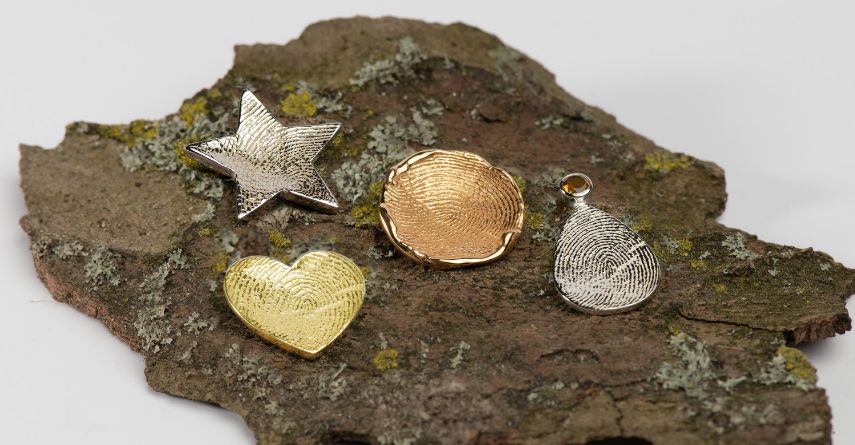 Ebenso ist es möglich, den Fingerabdruck eines Verstorbenen aufzunehmen und als bleibende Erinnerung in Ringe, Anhänger oder Ohrstecker zu gravieren. Gerne zeigen wir Ihnen Beispiele für Erinnerungsschmuck und stellen Ihnen die verschiedenen Möglichkeiten vor.