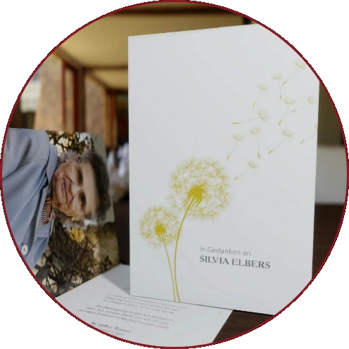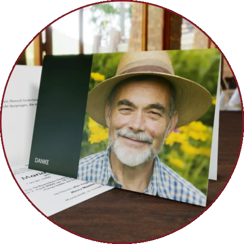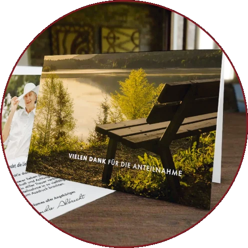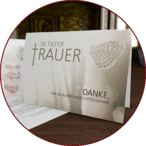 Mit individuell gestalteten Trauerdrucksachen unterstützen wir Sie dabei, Ihre Angehörigen und Freunde über den Verlust eines geliebten Menschen zu informieren. Ob Traueranzeigen in der Zeitung, Trauerkarten oder Danksagungen – wir setzen Ihre Wünsche zuverlässig und zeitnah um. Schöne Zitate, ausdrucksstarke Fotos oder Symbole … gemeinsam finden wir die passende Gestaltung und die richtigen Worte.